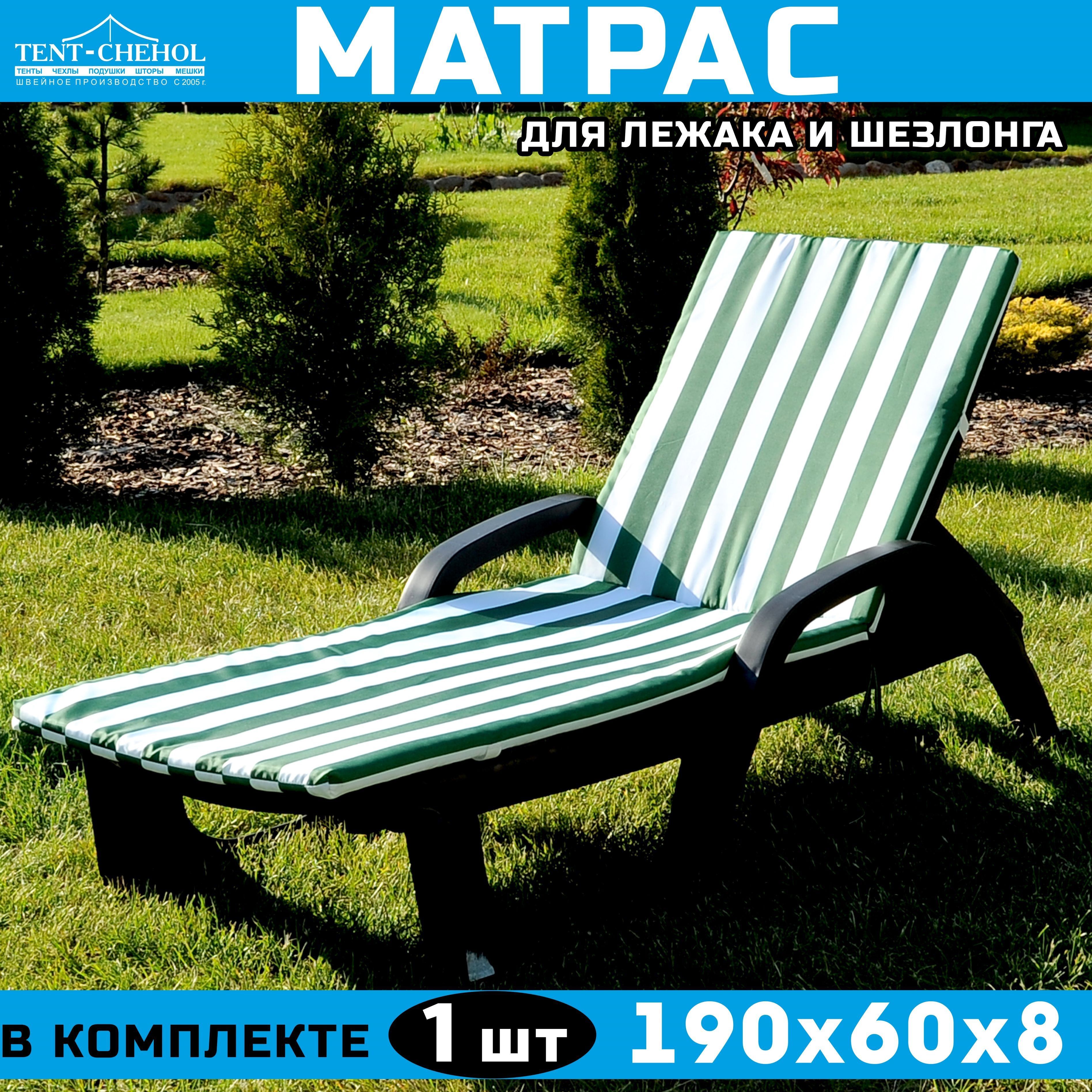 Матрас для шезлонга и лежака 190х60х8 (бело-зеленый)