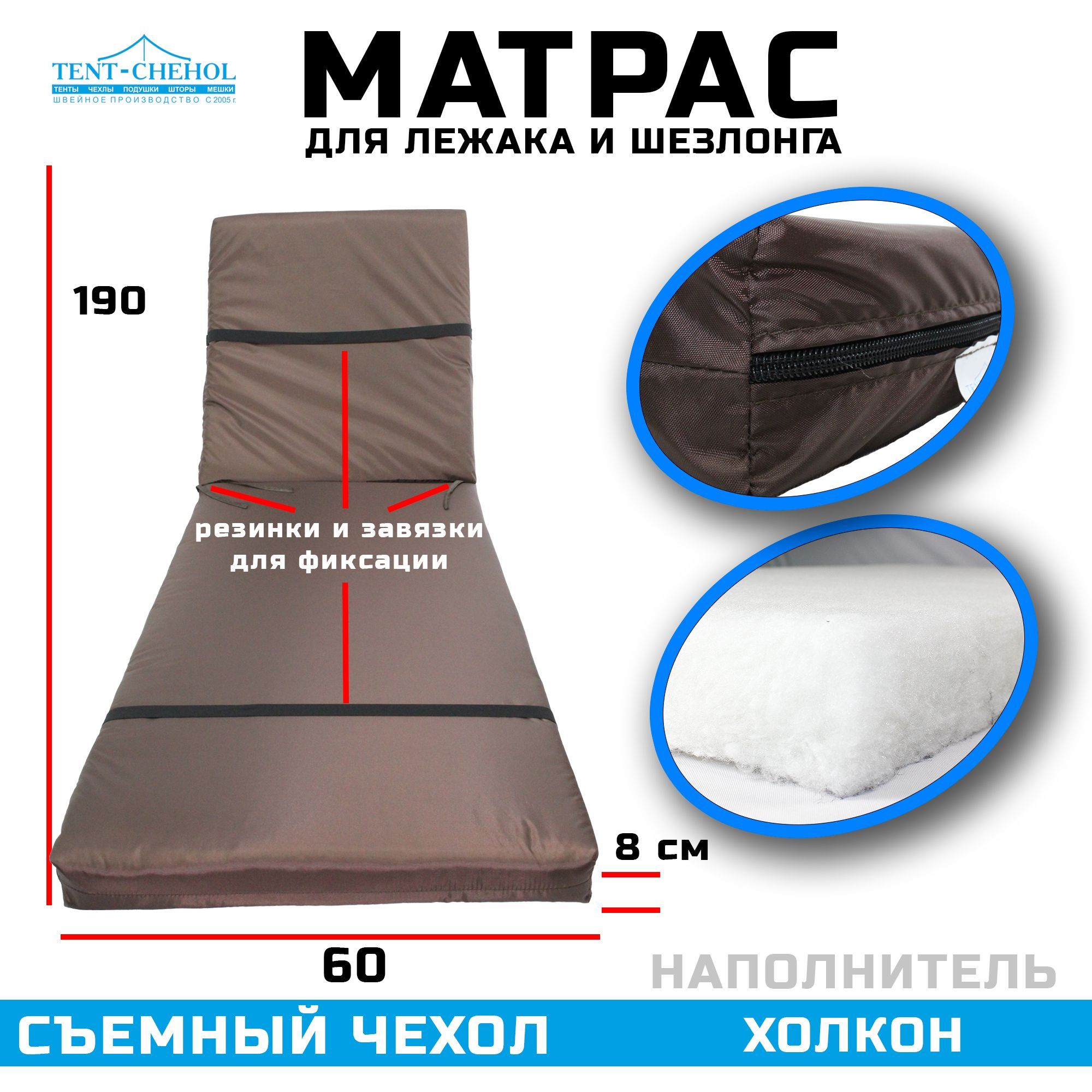 Он имеет длину 190 см, ширину 60 см и высоту 8 см, что идеально подходит для большинства шезлонгов. Наполнитель из холкона обеспечивает мягкую, но поддерживающую поверхность, которая будет поддерживать вашу спину и предотвращать боли в теле.