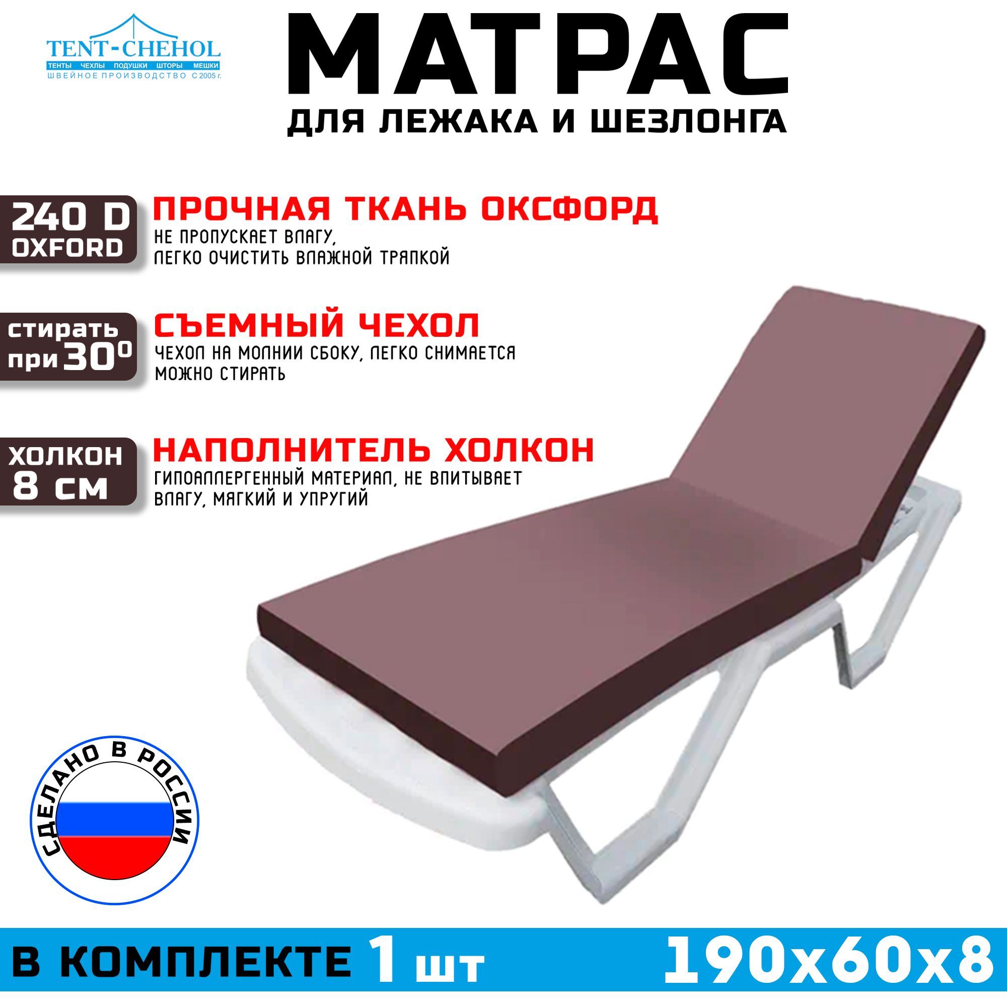 Краткое описание «Матрас для шезлонга и лежака 190х60х8 (коричневый)»