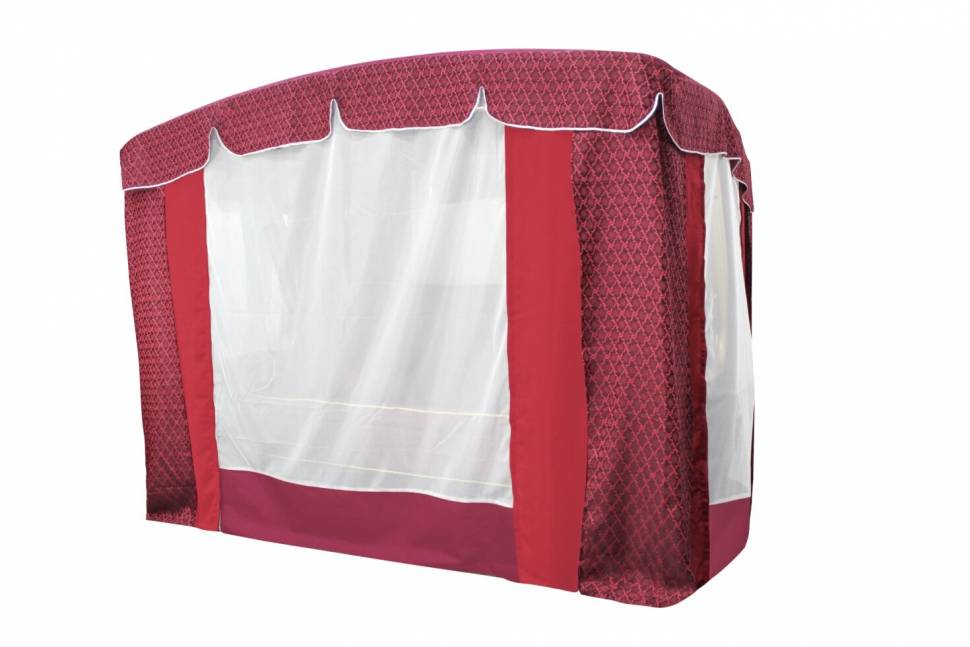 Мы предлагаем вам купить комплект для качелей садовых княгиня четырёхместных. Такой комплект выполнен в бордовом цвете, он подойдёт для глубины садовых качелей 277 см, ширины 170 см, высоты 188 см. Для изготовления тента мы использовали материал оксфорд 600. Этот материал качественный, он помогает защитить от солнечных лучей, не пропускает воду, в нём не размножаются микроорганизмы. Благодаря москитной сетке вы можете не беспокоиться о насекомых, они не испортят ваш отдых.