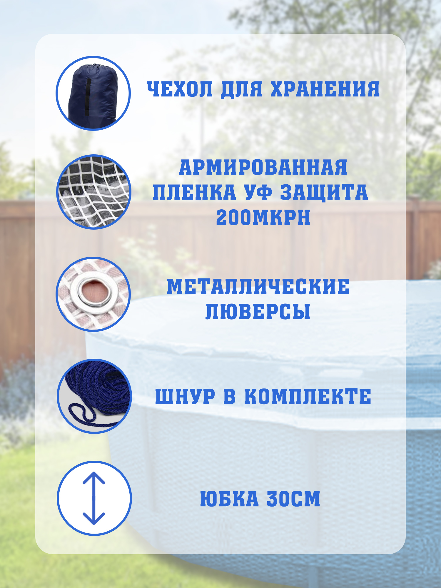 Тент d396см для каркасного бассейна из армированной светостабилизированной пленки 200 мкрн
